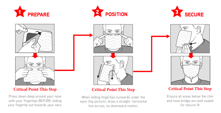 CURRENT MASKS: Straps, ties, metal nose clips and pressure are necessary to create a tight